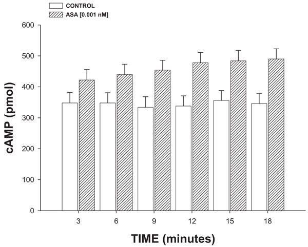 The results (Fig. 7) showed that ASA (1 nM/min) increased the cAMP levels in a time-dependent manner (3-18 min).